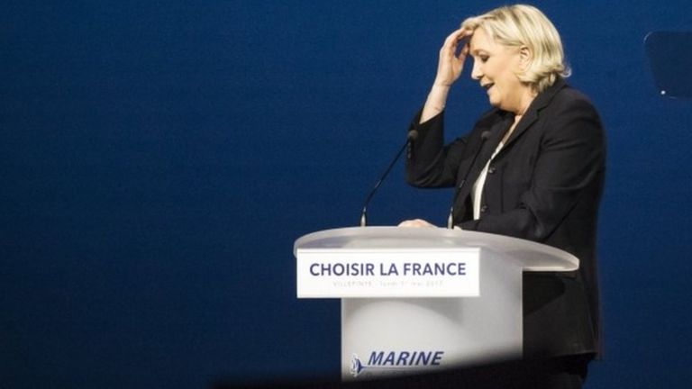Ms Le Pen faces centrist Emmanuel Macron in the final round on Sunday.